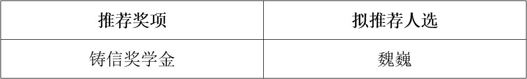 根据西南财经大学《关于2021-2022学年部分校外奖学金评选工作的通知》的要求,本着“公开公平公正”的原则,在学生个人自主申报的基础上,经过公开展示答辩、学院评审小组评审、 集体讨论决定,太阳集团tcy8722网站2021-2022学年铸信奖学金拟推荐人选公示如下: